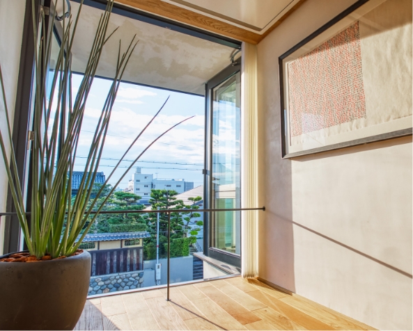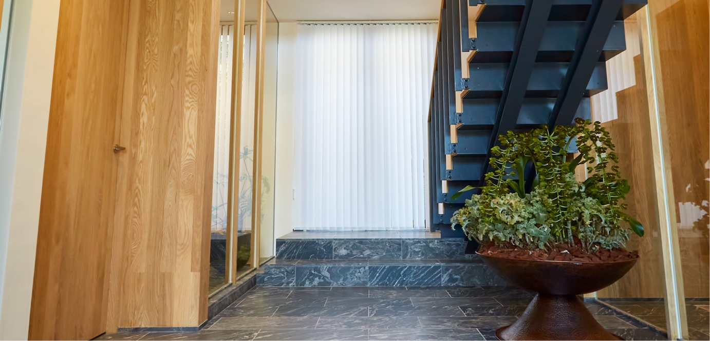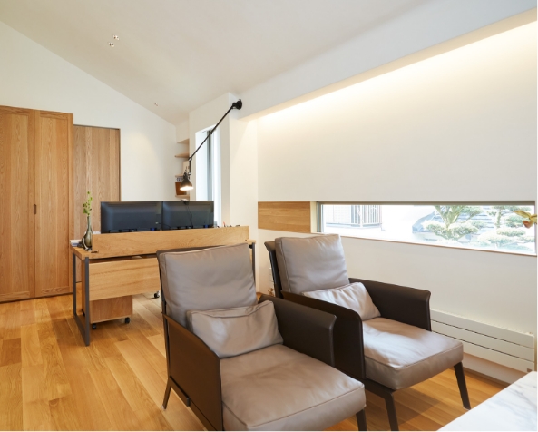 当事務所の建物は、スターパティヤ・ヴェーダという古代インドの知識に基づいて設計・建築されています。スターパティヤ・ヴェーダは、太陽などからの影響を考慮した建築学です。室内には無垢材や漆喰、天然石などの自然素材が使われています。ぜひ当事務所にお越しいただき、建物の静寂や落ち着きを感じていただけると幸いです。