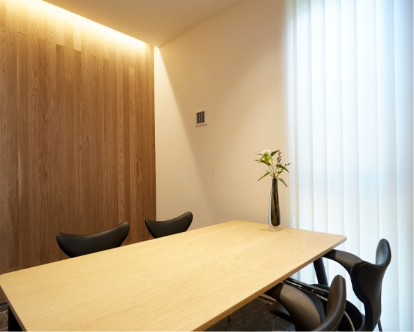 - 2つのミーティングルームは、いずれも明るく、落ち着いた雰囲気の個室です。ミーティングルーム同士は壁で接しておらず、プライバシーが保たれるよう配慮しています。